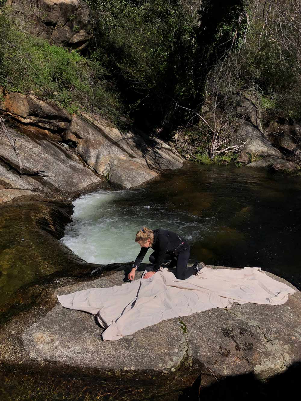 After working together online for a year, developing the project, the group met for the second time in March 2024, in Extremadura, Spain. At a residency in the Sierra de Gredos National Park (Ras de Terra), the artists lived and worked together, responding to the impressive terrain of mountains and thunderous rivers. This phase of collaboration culminated in an exhibition in the Ras de Terra Gallery.