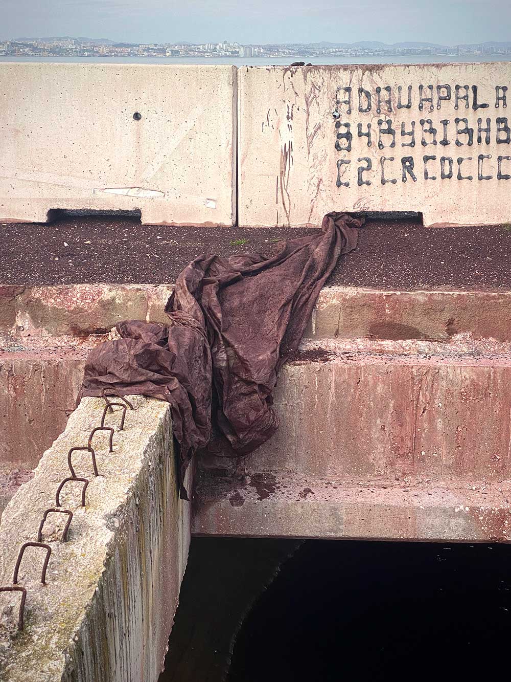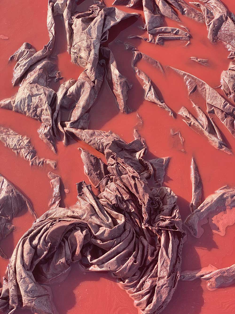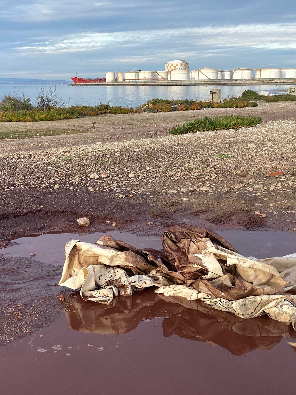 In the post-industrial landscape of Barreiro, Lisbon, until the 1970s one of the largest industrial areas in Portugal and the starting point of revolutionary and trade union movements, irregularities are taking shape: Caput Mortuum, a toxic pigment containing iron oxide, covers the surface right down to the bottom of the Tejo River. It is a remnant of the former industry for the production of copper oxide for fertilisers and paint primers. Anna Franke interprets the history of the abandoned industrial site and captures it in the thick, irregular layer of her sculptures.