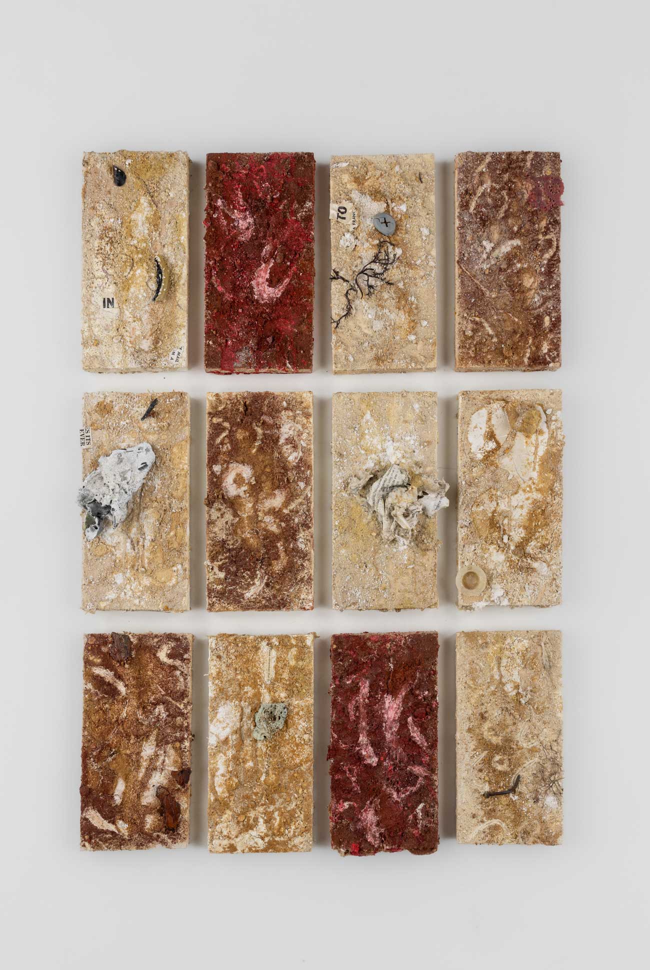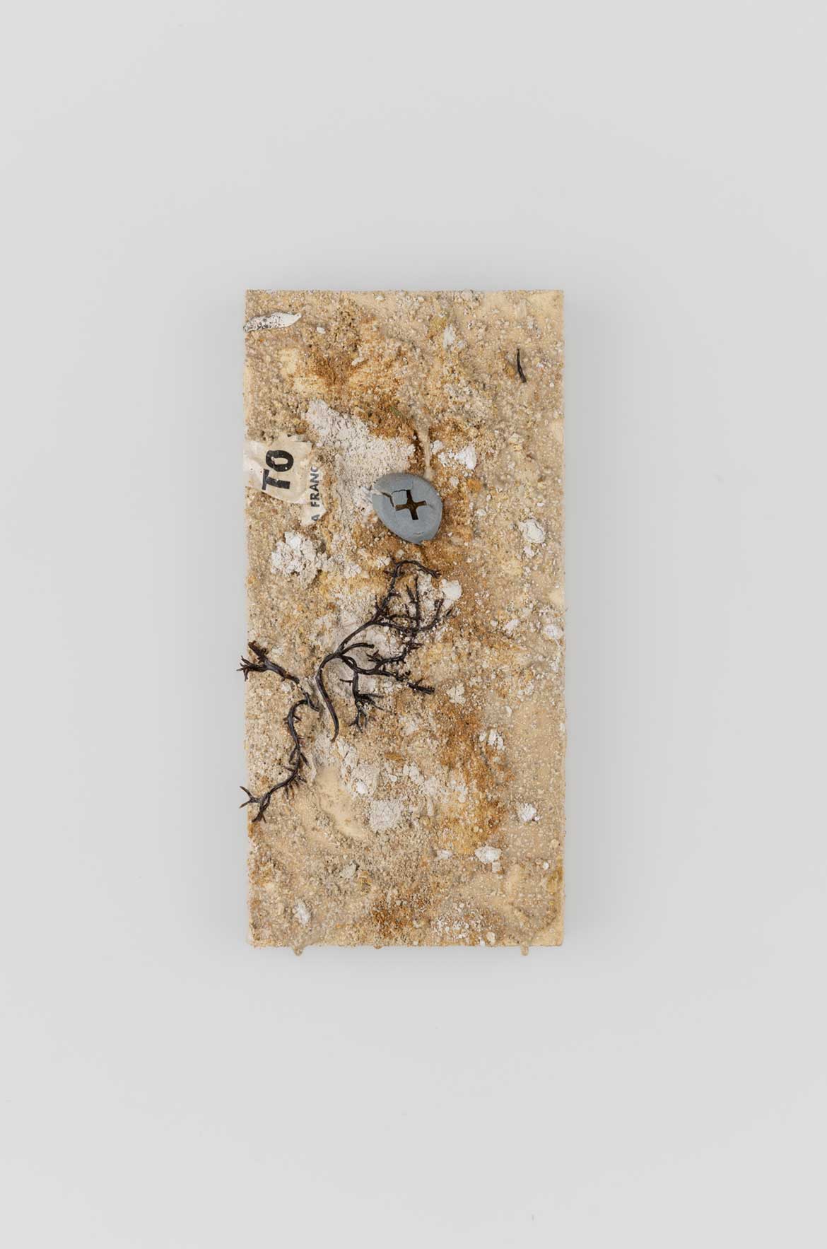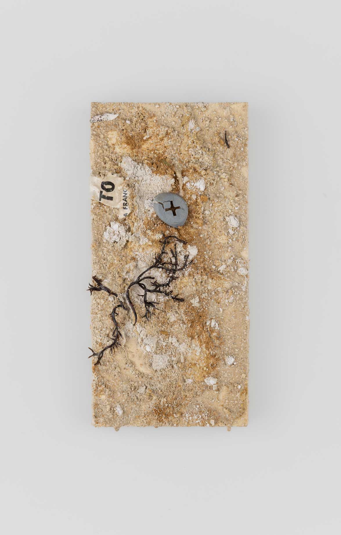 Natural pigment, gesso, paper, plastic rubbish on wood panel